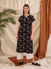 Eliş Şile Bezi Uzun Kol Vual Gonca Uzun Yazlık Elbise Tomurcuk Desen Siyah 6162