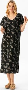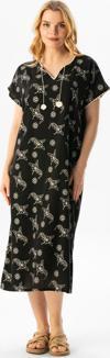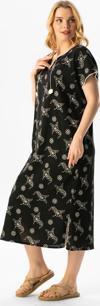 Kısa Kol Şile Bezi Baskılı Midi Boy Yazlık Elbise Serpme Desen Siyah Syh