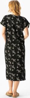 Eliş Şile Bezi Kısa Kol Şile Bezi Baskılı Midi Boy Yazlık Elbise Serpme Desen Siyah Syh