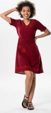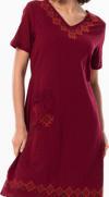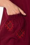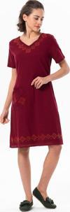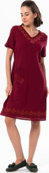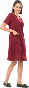 Eliş Şile Bezi Kısa Kol Şile Bezi Kruvaze Yaka Nakışlı Tülin Midi Boy Yazlık Otantik Elbise Bordo Brd