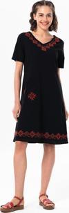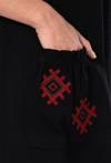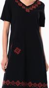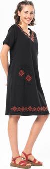 Eliş Şile Bezi Kısa Kol Şile Bezi Kruvaze Yaka Nakışlı Tülin Midi Boy Yazlık Otantik Elbise Siyah Syh