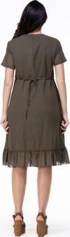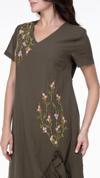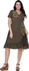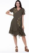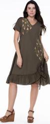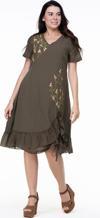 Kısa Kol Vual Candan Midi Boy Bahar Dalı Yazlık Otantik Elbise Haki Hk