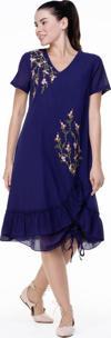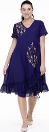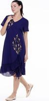 Kısa Kol Vual Candan Midi Boy Bahar Dalı Yazlık Otantik Elbise Mor Mor