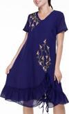 Ekol Kadın Beli Kemerli Düğmeli Elbise 5076 Lacivert - Image 1