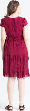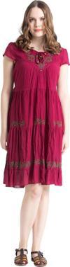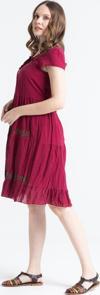 Kısa Kol Vual Vildan Nakışlı Midi Boy Yazlık Elbise Bordo Brd