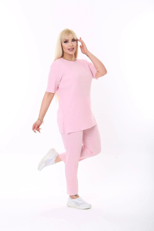 Kadın Kısa Kollu Beli Lastikli Yırtmaçlı Rahat Kalıp İkili Kaşkorse TakımRaporlu Kaşkorse KumaşYırtmaçlıKısa KolBeli Lastikli