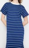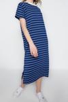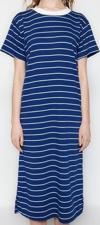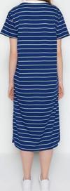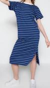 Ersefa Kısa Kollu Bisiklet Yaka Maxi Elbise Lacivert Çizgili Yırtmaç Detaylı Shift Düz Maxi Örme Elbise
