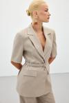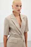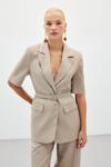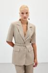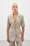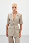 Sateen markasının şıklığı ve zarafeti bir araya getiren kısa kollu kemerli ceketi, kadınlar için özel olarak tasarlanmıştır.