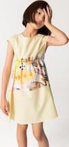 Beli kendindenlastikli bu SheShe Yaz elbisesi sarının en soft tonu ve abstract desenli kısmıyla farklı ve rahat bir tarz sunuyor. Elbise %100 pamuktur ve astarsızdır.