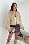 Kış aylarının favori parçası olmaya aday bu kısa kürk ceket, şıklığı ve konforu bir arada sunar. Yumuşacık kürk dokusu sayesinde sıcak tutarken, modern kısa kesimiyle stilinize zarif bir dokunuş katar.