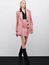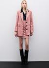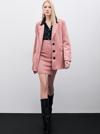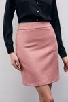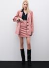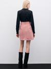 Yüksek bel, arka fermuarlı, kısa süet etek.