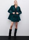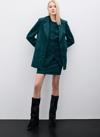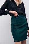 Yüksek bel, arka fermuarlı, kısa süet etek.
