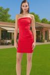 Kendinizi özel hissetmenizi sağlayacak bu muhteşem kırmızı elbiseyle tanışın! Vücudu saran, şık ve modern tasarımıyla dikkatleri üzerinize çekeceksiniz. Yüksek kaliteli Finike dokuma polyester kumaştan üretilen elbise, hem konforlu hem de dayanıklıdır. Straplez tasarımı ve büzgülü detayı, feminenliğinizi vurgularken, kısa boyu modern ve cesur bir tarz yaratmanıza yardımcı olur. Mezuniyet balosu, düğün, parti veya herhangi bir özel davet için ideal olan bu elbise, her anınızda kendinizi mükemmel hissetmenizi sağlayacaktır.