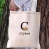 Kişiye Özel Çiçek Desenli Harf & İsim Bez Çanta – Doğal Kumaş Şık Hediye