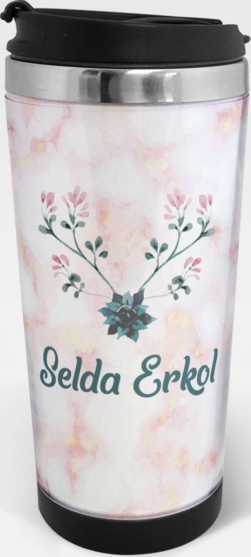 Kişiye özel Isim Yazılı Mermer Desenli Termos