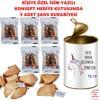 Kişiye Özel Motivasyon Hediye Kutu - (Motivasyon Mesajlı 5 Adet Şans Kurabiyesi)Konsept konserve kutusunun dış etiketi kişiye özel isim yazılı olarak hazırlanmaktadır. Şans kurabiyeleri yeni üretim tarihlidir. Ürün üzerindeki şeffaf ambalajda SKT yazmaktadır.Şans kurabiyeleri içerisinden motivasyon mesajları çıkmaktadır. Konserve Konseptli Hediye Kutusu Hakkında Bilinmesi GerekenlerKonservenin dış tasarımındaki lüks kuşe etiket kişiye özel hazırlanmaktadır. Ürün, teneke gıda konservesi şeklinde tasarlanmış ve içerisinde şans kurabiyesi bulunan sürpriz kutusudur.Konserve tenekesinin kapağı kapalı şekilde gönderilmekte olup ürün açıldıktan sonra teneke kalemlik, saksı, masa üstü düzenleyici vb şekilde kullanıma uygundur.Konserve tenekelerinin içerisini lezzetli mi lezzetli taze üretim şans kurabiyesi bulunmaktadır.İlginç konsept metal hediye kutusu ile sevdiklerinizi mutlu edebilirsiniz.