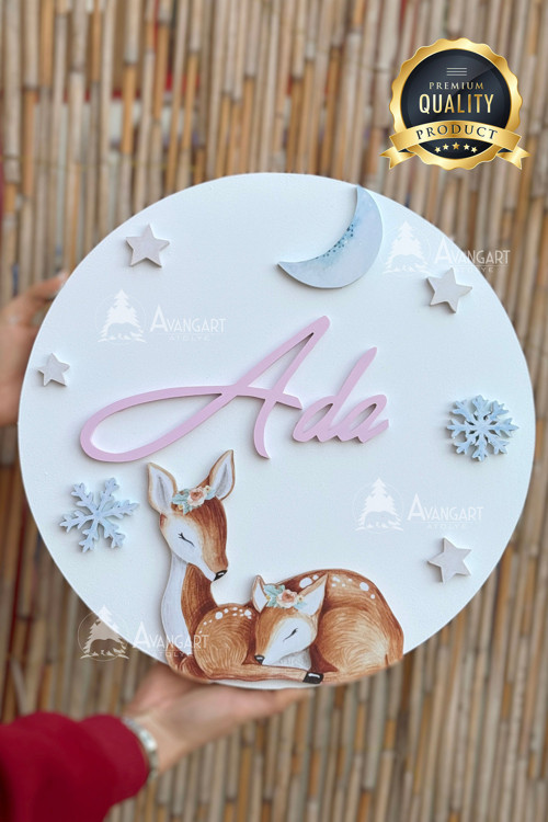 KİŞİYE ÖZEL YENİ DOĞAN AHŞAP BEBEK ODASI KAPI VE DUVAR SÜSÜ -35 cm-