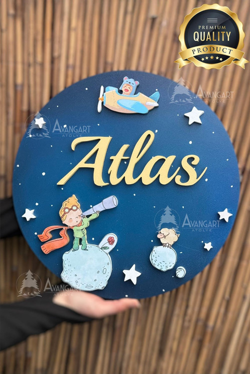 Avangart Atölye KİŞİYE ÖZEL YENİ DOĞAN AHŞAP BEBEK ODASI KAPI VE DUVAR SÜSÜ -35 CM-