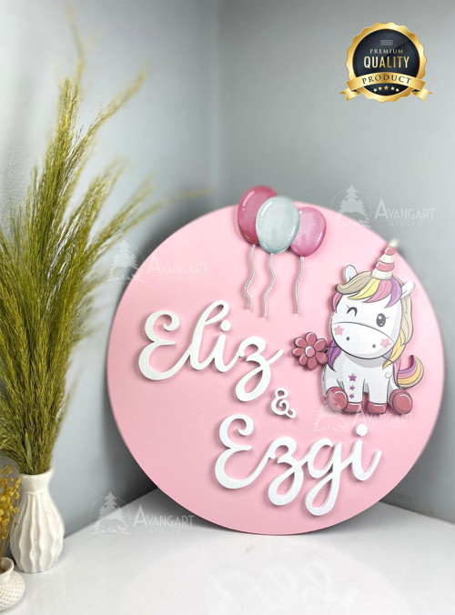 Avangart Atölye KİŞİYE ÖZEL YENİ DOĞAN AHŞAP BEBEK ODASI KAPI VE DUVAR SÜSÜ -35 CM-
