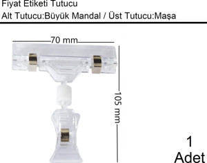 Etiket Tutucu / Maşalı / Büyük Mandal / Şeffaf / 70x105 mm / 1 Adet