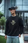 Lumiart Kışlık Bisiklet Yaka Ön Ve Arka Baskılı SweatShirt - Siyah