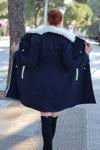 Tamboy Yakası Kürk Detaylı Şık Kadın Kaban - Image 1