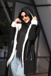 Mizalle Kürk Detaylı Şeritli Siyah Kaban 42