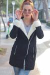 Ersefa Tasarım Düz Astarlı Yaka Uzun Regular Kapüşonlu Kadın Kapüşonlu Yandan Çıt Çıt Su İtici Şişme Mont
