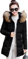 Kışlık Su Geçirmez Eldiven Detaylı Uzun Kadın Şişme Mont - Image 1