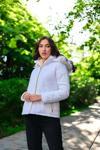 Günlük Kışlık Kapüşonlu Kürklü Orta Boy Kadın Şişme Mont - Image 1