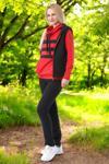 MDB Kadın Kırmızı Kapşonlu Etek Ucu Detay Arma Ters Dikiş Gorunumlu Ikili Takım - Image 1