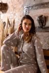 Kadın Uzun Kollu Kışlık Peluş Polar Önden Düğmeli Pijama Takımı