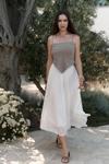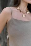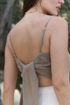Ayarlanabilir askılı, çift katlı, üçgen keten karışımlı transparan crop.