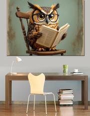 Kitap Okuyan Baykuş Dekoratif Kanvas - Mdf Ahşap Tablo