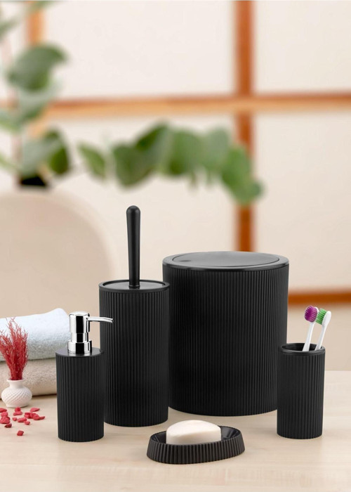 Diş fırçalık + Sıvı sabunluk + Katı sabunluk + Çöp kovası + Tuvalet fırçasından oluşmaktadır.