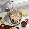 Stand mikserin dönme hareketiyle birleştiğinde karıştırıcı, soğuk tereyağını eritmeden kuru malzemeler içinde kolayca ideal boyutta parçalara ayırır.