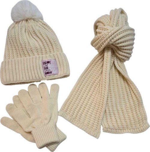 - 3'lü set halinde sunulan atkı, bere ve eldiven ile kış aylarında sıcak tutar.