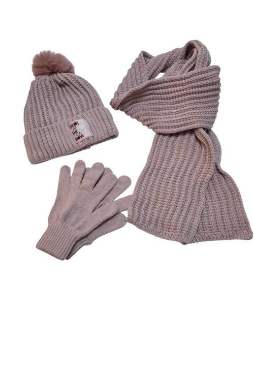 9-15 Yaş Kız Çocuk Atkı Bere Eldiven 3'Lü Takım