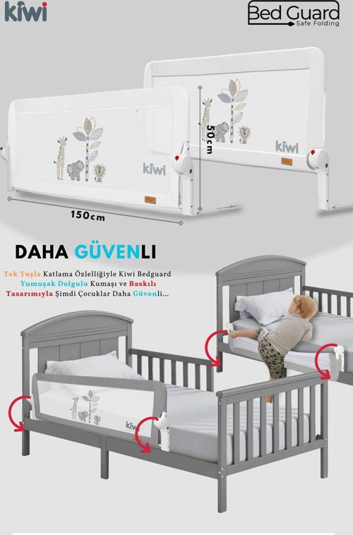 Kiwi Çocuk Yatak Koruyucu Bariyeri Ve Yatak Korkuluğu, Ekstra Dolgulu Kumaş