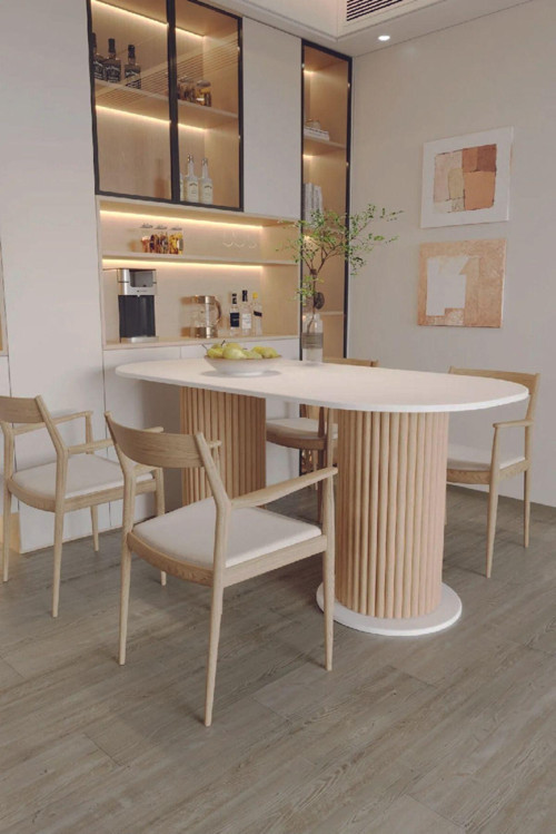 Kiyra Wood Beyaz Dekoratif Ayaklı Elips Mutfak Yemek Masası 90x180 cm