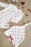 - Kız Bebek Beyaz Kalpli Lüks Süslü 5 Li Hastane Çıkışı Yenidoğan Set STL6398