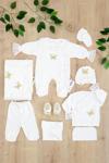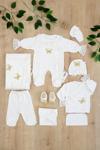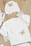 Kız Bebek Ekru Kelebekli Fistolu % 100 Pamuk 10 Lu Hastane Çıkışı Seti STL6741