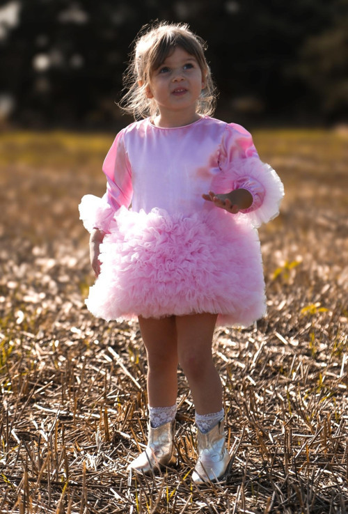 Üst simli , alt tütüsü kabarık tütülü, uzun kol ve kol ucunda tütü lastik dönmektedir. Arkasında büyük dolgulu fiyonk bulunmakta.Fermuarlıdır.Altında tül kullanılmıştır kabarık dursun diye.Tülleri bebeğinizi rahatsız etmemesi için içinde pamuk astar vardır.Ürünün daha uzun süreli kullanılması için aşağıdaki yıkama talimatlarına uyulması önerilir.Eğer mümkünse ilk yıkamanızı elde yapılması, sonraki yıkamalar için 30 derecede düşük devir, yumuşatıcı kullanılmadan ve sıkma yapmadan yıkama yapılması tavsiye edilir.