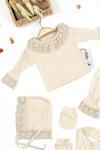 Kız Bebek Natural Pamuk Kumaş 5 Li Dantelli Lüks Hastane Çıkışı Zıbın Seti STL6674