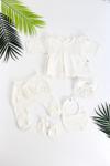 Kız Bebek Natural Pamuk Kumaş 5 Li Lüks Süslü Hastane Çıkışı Seti STL6678