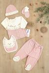 Kız Bebek Natural Pamuk Kumaş 5 Li işlemeli Lüks Hastane Çıkışı Seti STL6792