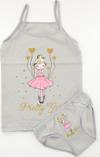 Kız Çocuk Pamuklu Önü Baskılı Süprem Kalın Askılı Atlet Şort İç Giyim Takım | 43164 - Image 1