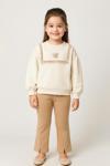 Şıklık ve rahatlığı bir arada sunan bu özel tasarım 2’li kız çocuk takımı, günlük kullanımda ve özel günlerde ideal bir tercihtir. Yumuşacık 3 iplik şardonlu kumaşı sayesinde soğuk havalarda sıcak tutar. Üst parçada zarif dantel işlemeli kare yaka detay ve küçük çiçek nakışı bulunurken, alt parça modern yırtmaçlı pantolon formuyla trend bir görünüm kazandırır.