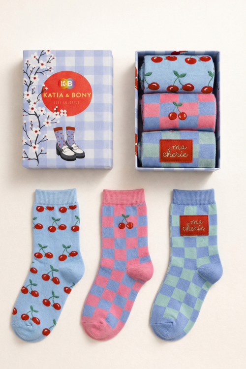 Katia & Bony’nin renkli dünyasından çıkan bu özel çocuk çorap seti, minik ayaklara hem konfor hem de eğlence katıyor. Yumuşak dokusu sayesinde gün boyu rahat bir kullanım sunarken, pastel tonları ve sevimli kiraz desenleriyle çocukların favorisi oluyor.