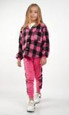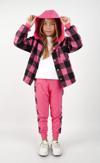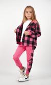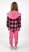 Çocuksan Baby&Kids Wear Kız Çocuk 3'lü Takım Ekose Kapüşonlu Ceket Badi Eşofman Altı Fuşya Siyah Spor Kombin